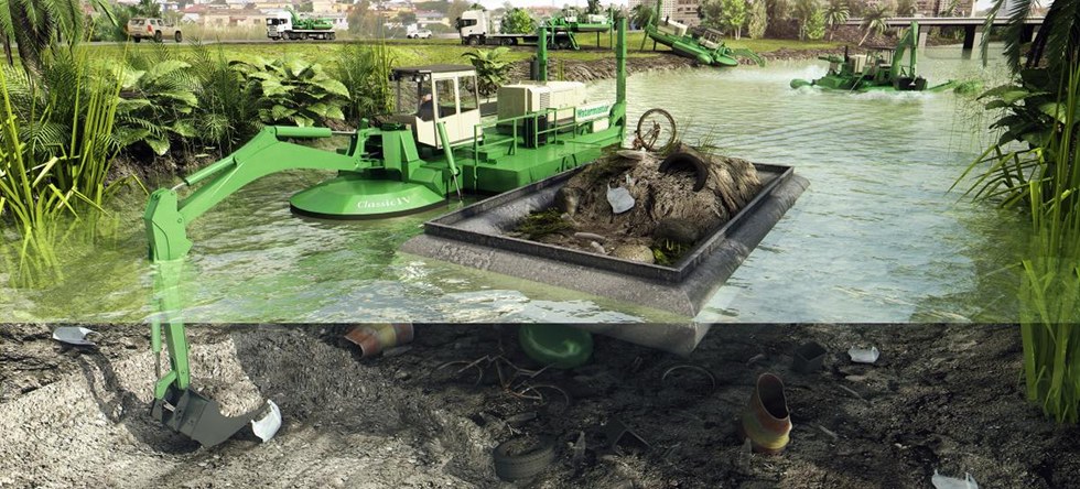 Upių, ežerų, tvenkinių ir kitų vandens telkinių, uostų ir prieplaukų akvatorijų valymas ir gilinimas žemsiurbe.